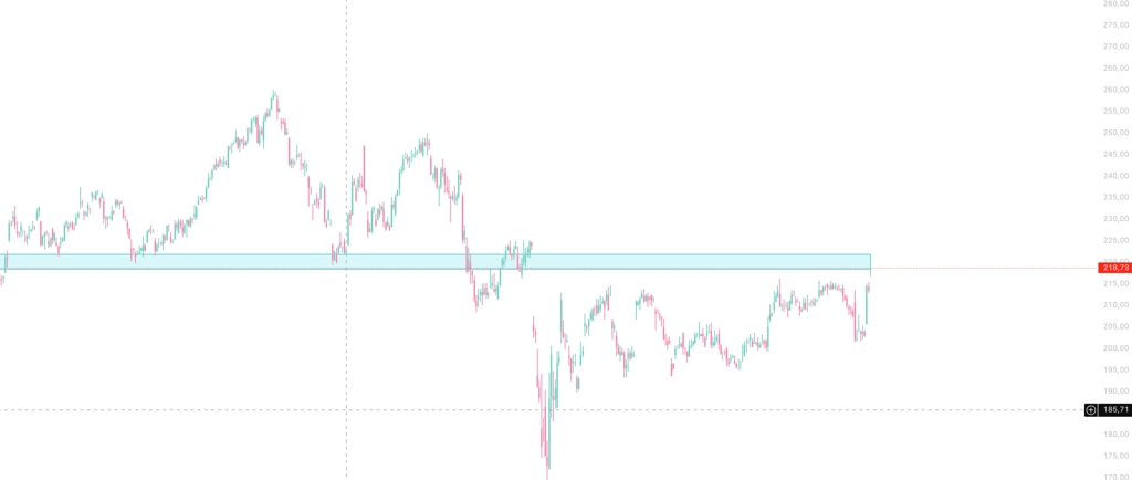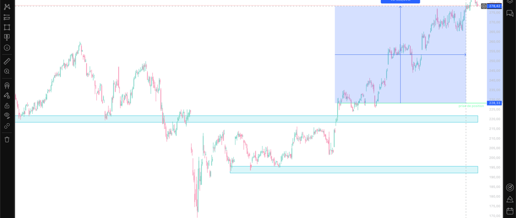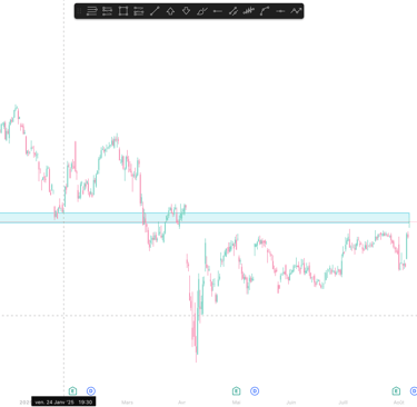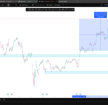 Notre analyse chartiste identifie une résistance majeur sur l'action apple. si ça casse la zone on peut s'attendre a une hausse de l'action